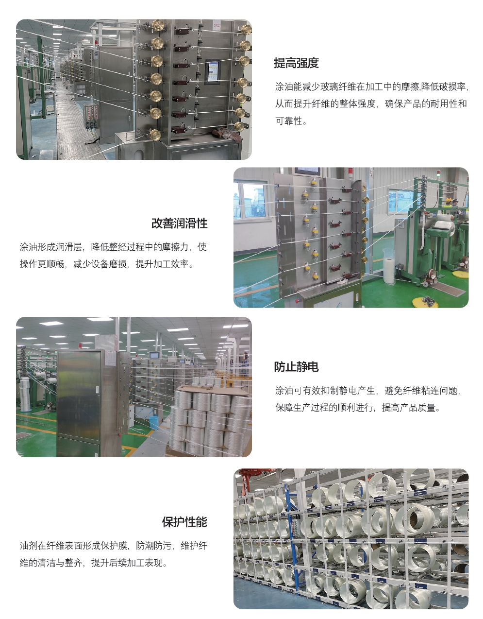 涂油柜是玻璃纖維生產線中的一種設備,主要用于對紗線進行涂油處理。涂油柜通常由涂油槽、輸送系統(tǒng)、涂油輥和控制系統(tǒng)等組成,其作用是在紗線表面形成一層薄膜,提高紗線的柔軟性和潤滑性,減少紗線之間的摩擦和斷裂。